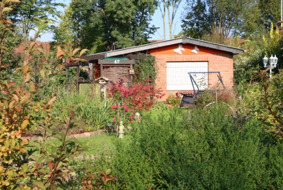 Jeder Garten umfasst eine Grundfläche von ca. 400 m2 und enthält eine gemauerte Laube mit einem Strom- und Wasseranschluss.