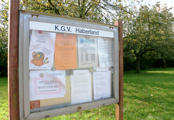 Wichtige Mitteilungen aus dem Vereinsleben und alle Termine hängen dort aus. Dort steht auch , wenn ein Garten frei wird und neu zu verpachten ist.