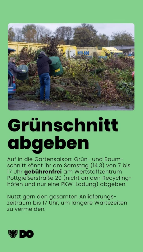 Guten Morgen liebe Gartenfreunde, denkt dran – heute könnt ihr bei der DOGA euren Grünschnitt kostenlos abgeben!